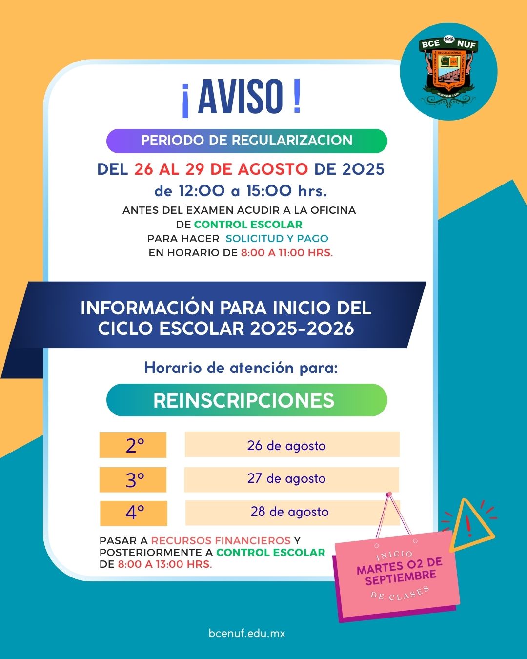 INICIO DE CLASES CICLO ESCOLAR 2025-2026