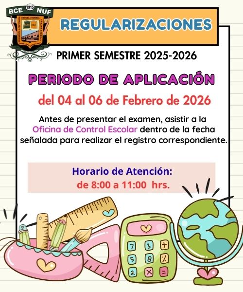 Antes de presentar el Examen, acudir a la Oficina de Control Escolar a realizar el trámite correspondiente para el Pago y Registro en el horario de atención: